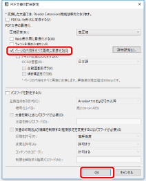 [文書の印刷および編集を制限する(権限設定を変更するにはパスワードが必要)] | 文書の印刷、および編集をする際にパスワードの入力が必要となるように設定する場合は、チェックマークを付けます。 |