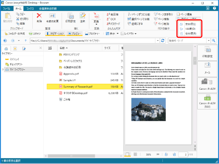 プレビューウィンドウの[選択ページを左に90度回転して保存]、または[選択ページを右に90度回転して保存]をクリックしてもページを回転して、保存できます。 |