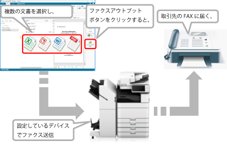 送信する文書を選択して、ファクスアウトプットボタンをクリックします。