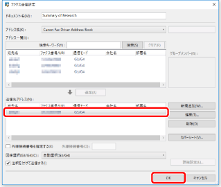 宛先を選択してダブルクリックしても、[送信先アドレス]に宛先が追加されます。 |