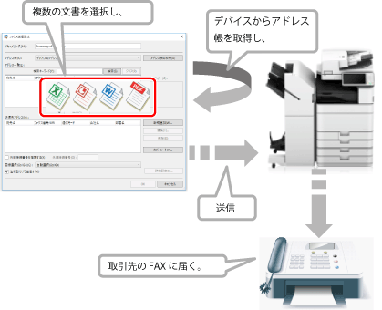 複数の文書を1つの文書にまとめて、ファクスを送信します。