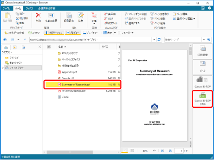 ファイルを選択して、ファクスアウトプットボタンをクリックします。