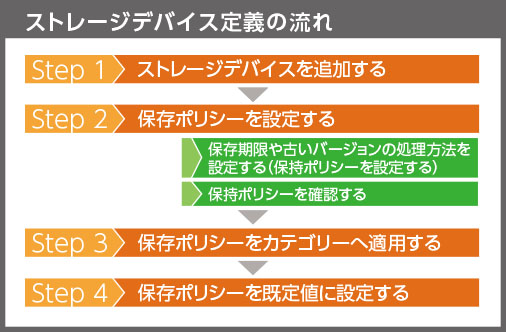 既定の設定では、Thereforeに保存されているすべての文書データはバッファーに書き込まれます。バッファーはあくまで一次的な保存領域のため、バッファーに保存されるデータの移行先として、恒久的にデータを保存可能なストレージデバイスを定義する必要があります。次に、自動的にデータを移行するためにカテゴリーなどに対しても保存ポリシーを設定します。