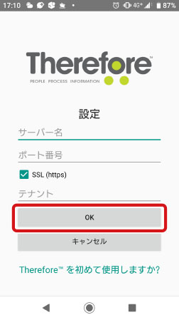 Therefore Go に対応している OS は以下のとおりです。 Android OS の場合:ver. 5.0 以降 iOS の場合:ver. 9.0 以降 接続情報など他の詳細情報については、ヘルプの「リファレンス→ThereforeTM Go→インストールと環境設定」を参照してください。 |