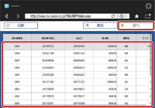 検索結果から目的の文書を選択し、[次へ]を押します