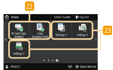 ![]() | Shortcut buttonsDisplay "Favorite Settings" that are registered to Copy, Fax, and Scan. Adding Buttons to the Home Screen |