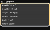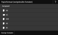 Als het bovenstaande scherm niet wordt weergegeven als papier wordt geladenAls u altijd hetzelfde papier gebruikt in de multifunctionele lade, kunt u het opgeven van de papierinstellingen overslaan door het formaat en type papier vast te leggen als de standaardinstelling. In dat geval wordt het bovenstaande scherm niet meer weergegeven. Als u het scherm wel wilt weergeven, selecteert u <Opgeven bij plaatsen papier> (Standaard papierinstellingen voor de multifunctionele lade registreren).