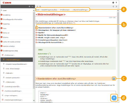 Klicka när du vill ställa in parametrar för att bestämma hur Användarhandbok ska visas, t.ex. teckenstorlek eller layout.