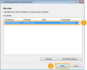 Välj enheten i [Enhetslista] och klicka på [Nästa].
