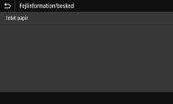 Viser detaljerne om de fejl, der er sket. For mere information henvises til "Fejlfinding (FAQ)" på hjemmesiden med online-manualer.