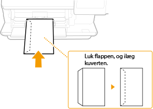Sørg for at udjævne eventuelle krøllede kuverter, før du ilægger dem. Vær også opmærksom på retningen af kuverterne, og hvilken side der vender opad. Du kan ikke ilægge kuverter i papirskuffen.