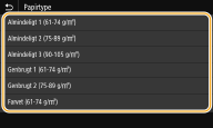 Når standardindstillingen er registreret, vises skærmen for papirindstillinger ikke, når der ilægges papir, og den samme indstilling bruges hver gang. Hvis du ilægger et andet papirformat eller en anden papirtype uden at ændre papirindstillingerne, kan maskinen ikke udskrive korrekt. For at undgå dette problem skal du vælge <Angiv ved ilægning af papir> i trin 3 og derefter ilægge papiret.
