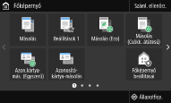 Átrendezheti a Főképernyő felületén megjelenő gombokat. Továbbá úgy is testreszabhatja a Főképernyő felületét, hogy parancsikonokat helyez el rajta, amelyek megkönnyítik egy-egy funkció kiválasztását. A Főképernyő testreszabása
