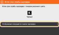 Если сообщение появилось, когда аппарат принимает факс/интернет-факс или включен автоматический вывод отчета, принятые факсы/интернет-факсы и отчеты будут сохраняться в памяти, чтобы после печати они не выглядели бледными. Чтобы продолжить печать несмотря на заканчивающийся тонер, задайте для параметра <Прод. печ. с низким ур. карт.> значение <Включить>. <Прод. печ. с низким ур. карт.>