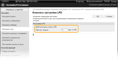 Установите флажок, чтобы разрешить печать по протоколу LPD. Если печать по протоколу LPD не используется, снимите флажок. [Использовать печать RAW]