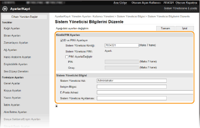 Bazı ayarları yalnızca, Sistem Yöneticisi Modunda oturum açtığınızda değiştirebilirsiniz.