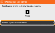 Μπορείτε να ορίσετε οποιαδήποτε τιμή ως ποσοστό επί της υπολειπόμενης ποσότητας γραφίτη στην κασέτα για την ενεργοποίηση μηνύματος. <Εμφ. χρον. για προετ. κασέτας>