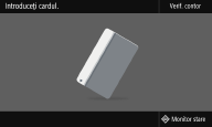 Acesta este un sistem de autentificare a cartelei ce vă permite să efectuaţi procesul de conectare al opţiunii Gestionare ID departament prin folosirea unei cartele de comandă în locul introducerii unui ID de departament. Vă puteţi conecta la aparat prin introducerea unei cartele de comandă şi vă puteţi deconecta prin scoaterea acesteia.