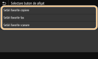 Selectaţi funcţia cu Setările favorite pe care doriţi să le adăugaţi ca buton.