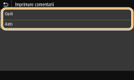 Dacă se selectează <Pornit>, se imprimă în modul de economisire a tonerului. Selectaţi <Pornit> când doriţi să verificaţi aşezarea în pagină sau alte caracteristici ale aspectului înainte de imprimarea finală a unei lucrări mari.