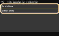 Inprimagailuaren kontrolatzailearen ezarpenak ez badatoz bat kargatutako paper-tamaina edo motarekin <Aktibat.> ezarrita dagoenean, baliteke papera trabatzea edo inprimatze-errore bat gertatzea.