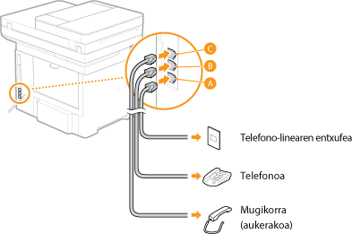 Konektatu makinarekin emandako telefono-kablea makinako telefono-linea entxufeari (