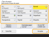 <Acceptar>. Desament de mides i tipus de paper utilitzats freqüentment per a la safata multiús