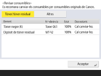 La pantalla <Tòner/tòner residual>