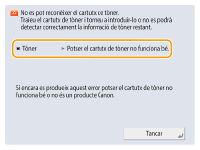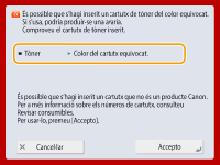 Posada en marxa de l'equip). Si encara es mostra el missatge després de reiniciar l'equip, anoteu-lo i poseu-vos en contacte amb el vostre distribuïdor local autoritzat de Canon.