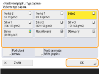 Jestliže se uložený papír nezobrazí, stiskněte <Podrobná nastav.> a vyberte jej ze seznamu.