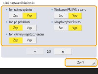 <Tón režimu spánku> | Tón se ozve, když stroj přechází do režimu spánku, nebo také když se stroj vypne, pokud nastavíte <Nast. rychlého spuštění pro hlavní napájení> na <Zap>. (V určitých situacích se může stát, že se stroj rychle nespustí a tón nezazní.) |