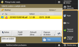 Tlačítka nastavení, která se zobrazují na obrazovce základních funkcí (pro kopírování, faxování a skenování), můžete změnit. Můžete také zobrazit jinou obrazovku základní ch funkcí, která bude přizpůsobená pro každého přihlášeného uživatele.