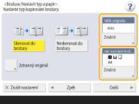 Stiskněte <Změnit> v <Velik. originálu> a vyberte velikost originálu. Vyberete-li <Auto>, velikost brožury se vybere automaticky podle velikosti originálu.