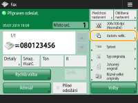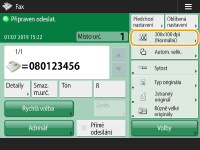![]() | Když zadáte určitý typ originálu, jako např. dokumenty pouze s písmeny nebo časopisy s fotografiemi, můžete faxy odesílat v optimální obrazové kvalitě. Výběr typu originálu |