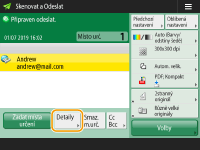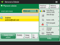 Obrazovka základních funkcí skenováníZadání míst určení z adresáře