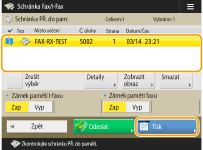 Po stisknutí <Detaily> můžete zkontrolovat informace o dokumentu, včetně jmen odesilatelů a počtu přijatých stránek. Stisknutím <Zobrazit obraz> umožníte kontrolu obsahu dokumentu a výběr a smazání stránek.