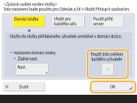 Osobní složka je složka sdílená na následujících obrazovkách. <Skenovat a Odeslat> <Síť> v <Skenovat a Uložit> <Síť> v <Přístup k uloženým souborům> |