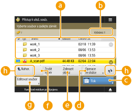 Stisknutím <Název> nebo <Datum/Čas> setřídíte seznam souborů a složek podle názvů nebo podle data/času ve vzestupném (