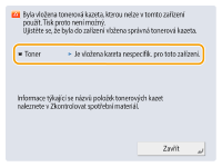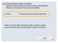 Restartujte stroj. Jestliže zpráva po restartování stroje nezmizí, poznamenejte si ji a kontaktujte místního autorizovaného zástupce Canon.