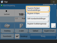 Hvis du bruger de samme indstillinger hver gang til kopierings-, fax- eller scanningsfunktionen eller gerne vil gemme komplicerede indstillinger, kan du registrere indstillinger som favoritindstillinger, der nemt kan genkaldes.