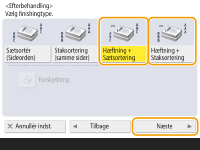 Tryk på <Hæftning + Sætsortering> eller <Hæftning + Staksortering>