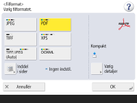Du kan ikke vælge <OOXML>, hvis du sender en fil, der er gemt i <Boks til huk.modt.> eller <Fax/I-faxindbakke>. |