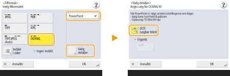 1 | Vælg OOXML vælg PowerPoint på dropdown-listen. tryk på <Vælg detaljer> <OCR (Søgbar tekst)>.![]() |