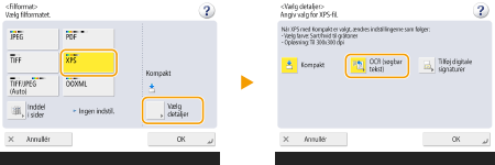 1 | Vælg <XPS> tryk på <Vælg detaljer> <OCR (søgbar tekst)>.![]() |