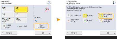1 | Vælg <PDF> tryk på <Vælg detaljer> <OCR (Søgbar tekst)>.![]() |