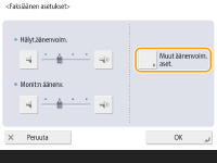 <Väärä Syöttöääni> | Ääni kuuluu virheellisen painiketoiminnon yhteydessä tai kun syötetään numero, joka on asetusalueen ulkopuolella |