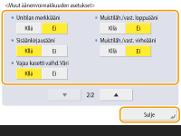 <Syöttöääni> | Ääni kuuluu joka kerta, kun käyttöpaneelin tai kosketusnäytön painiketta painetaan |