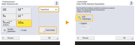 1 | Valitse <OOXML> valitse <PowerPoint> avattavasta luettelosta. valitse <Aseta tiedot> <OCR (Tekstihaku)>.![]() |