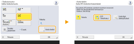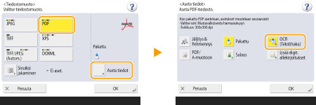 1 | Valitse <PDF> press <Aseta tiedot> <OCR (Tekstihaku)>.![]() |