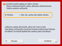 Jatka tulostusta valitsemalla <Ohita virhe>. Tietoja, joiden tallennus epäonnistui, ei kuitenkaan tulosteta oikein. Lisätietoja monikulmiopuskurista on kohdassa Tulostus.